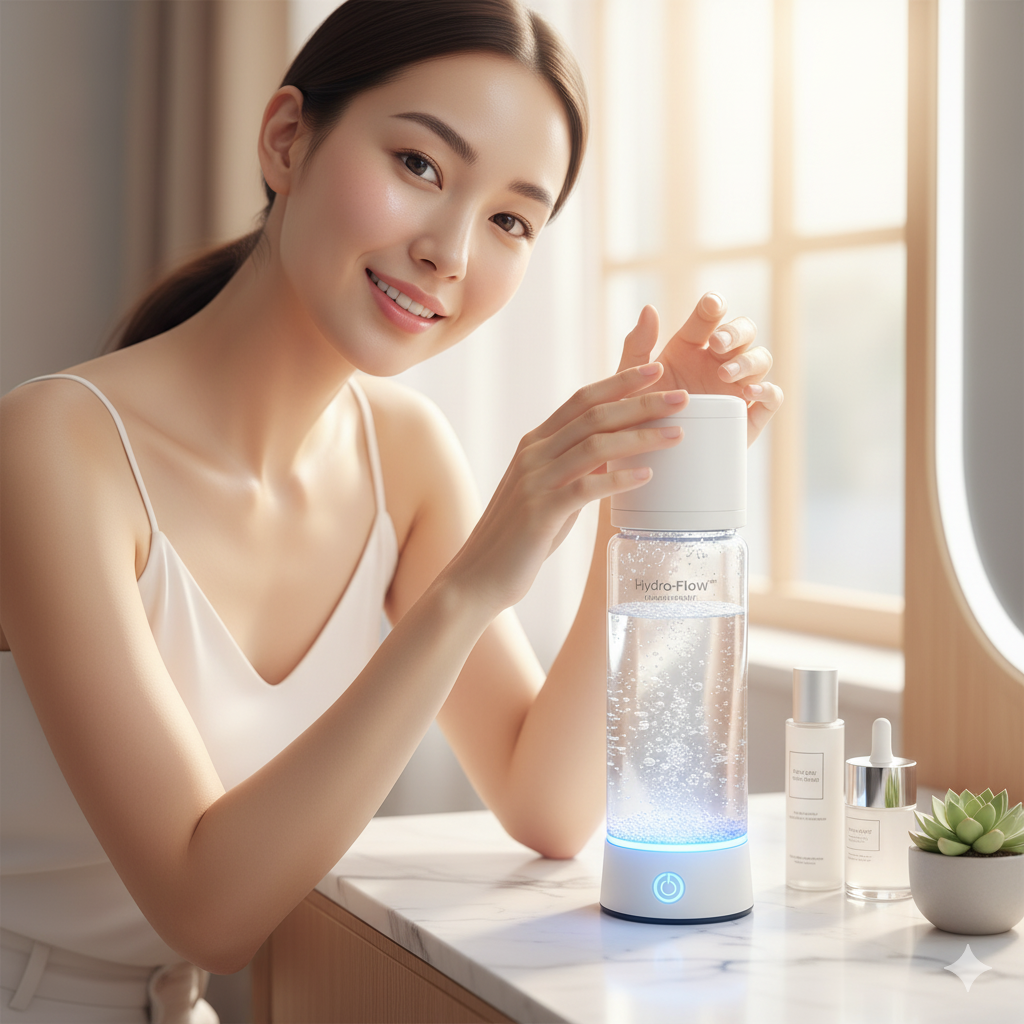 Hydro-Flow™ is a premium, rechargeable wellness bottle that uses advanced SPE/PEM technology to infuse your water with pure molecular hydrogen. It's designed to turn ordinary water into a powerful antioxidant elixir to boost energy, improve skin health, and support your overall vitality.
