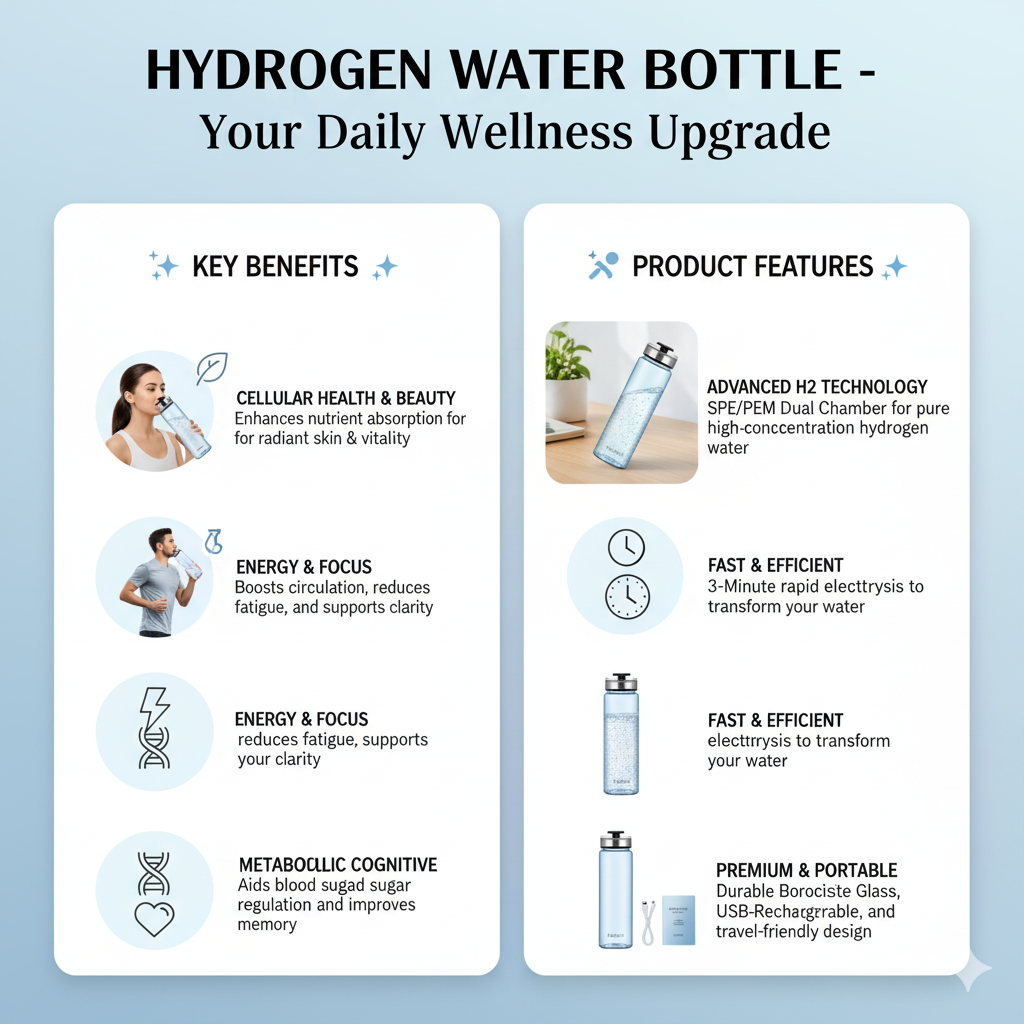 Transform ordinary water into a potent antioxidant elixir. Unlock cellular wellness, boost your energy, and achieve radiant skin with every sip of hydrogen-rich water.